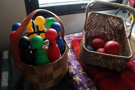 Laulamme ja kuuntelemme vanhoja tuttuja lauluja sekä pelaamme pelejä muistin virkistämiseksi. Arvoitukset ja bingopelit ovat aina olleet hyvin suosittuja. Meillä on mahdollisuus harrastaa myös sisäliikuntaa, bocca-peliä ja keilausta, ne saavat liikettä niveliin. Nämäkin pelit onnistuvat myös tuolista käsin, samoin kuin tuolijumppa tai musiikin tahdissa venyttely. Saunavuorot järjestämme avun tarpeen mukaan päivän aikana.